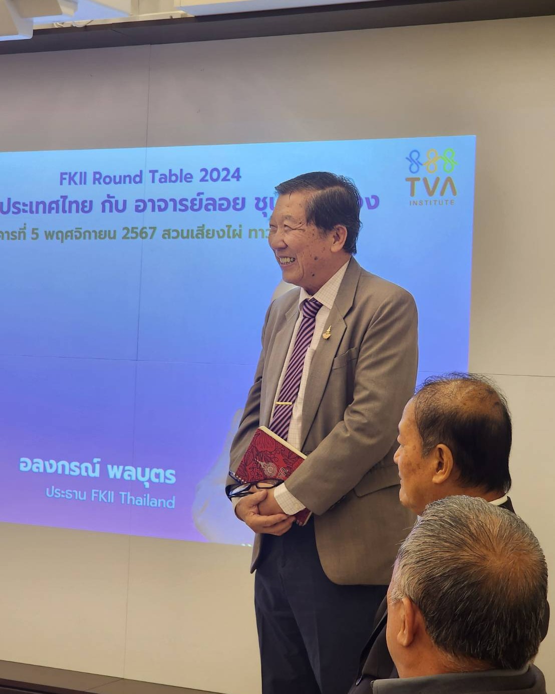 เมื่อวันที่ 5 พฤศจิกายน 2567 สถาบัน FKII Thailand ร่วมกับสถาบันทิวา (TVA) ได้จัดกิจกรรมเสวนาทางวิชาการภายใต้ชื่อ FKII Round Table 2024 ในหัวข้อ อนาคตประเทศไทย ณ ห้องประชุมสีขาว สวนเสียงไผ่ สถาบันทิวา ทาวน์อินทาวน์ กรุงเทพมหานคร โดยมีวัตถุประสงค์เพื่อเป็นเวทีแลกเปลี่ยนความคิดเห็นเกี่ยวกับแนวโน้มและความท้าทายที่ประเทศไทยจะต้องเผชิญในอนาคตอันใกล้