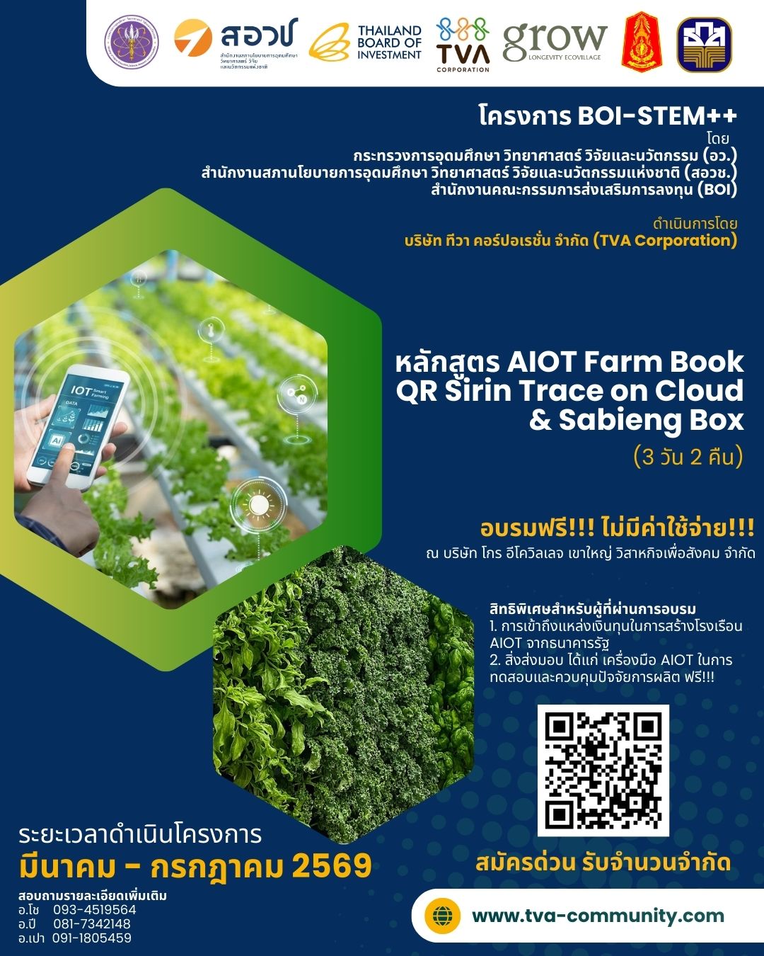 ยุคนี้แค่ปลูกเก่งไม่พอ ต้อง "โปร่งใส" และ "ตรวจสอบได้" ด้วย! ขอเชิญเกษตรกรและผู้ประกอบการร่วมพัฒนาทักษะกับหลักสูตร AIOT Farm Book : QR Sirin Trace on Cloud & Sabieng Box ภายใต้โครงการ BOI-STEM++